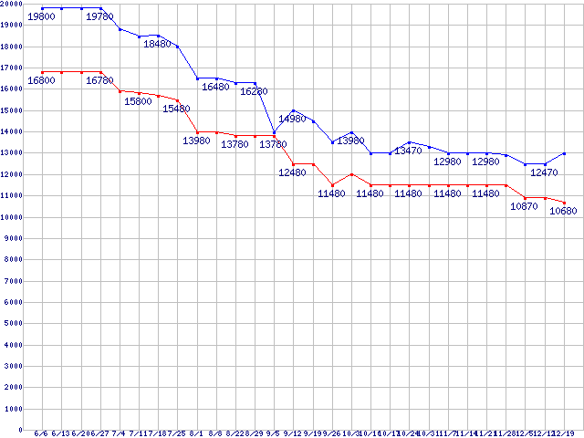 | Socket AM2 (HyperTransport 3.0,Triple Core,TDP 95W)の最安値推移 | | | (2008年6月6日~2008年12月19日) |