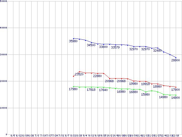 WD VelociRaptor (10000rpm,3Gb/s,16MB)の最安値推移