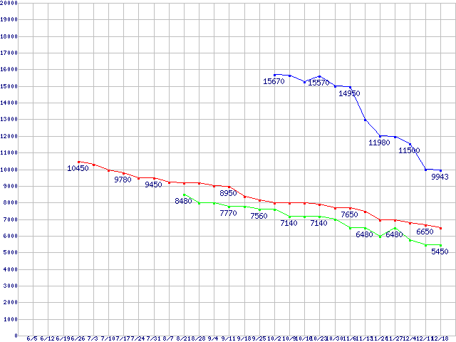 WD Scorpio Blue (5400rpm,3Gb/s,2.5インチ)の最安値推移