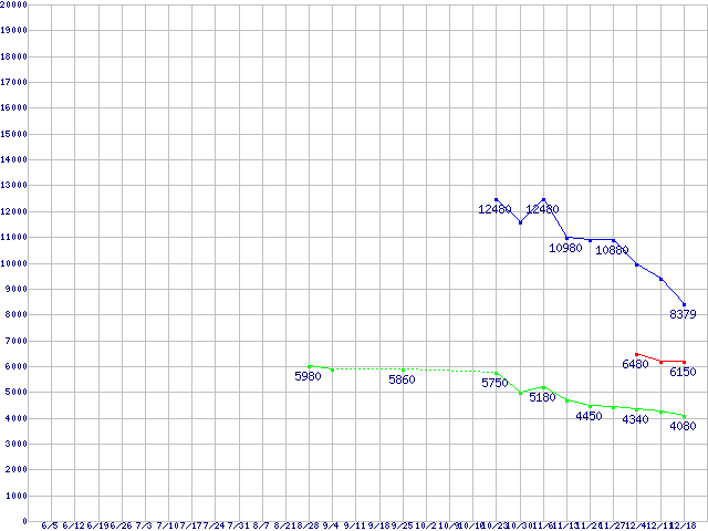 Deskstar P7K500 (7200rpm,3Gb/s)の最安値推移