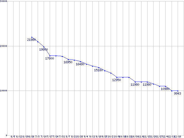 Spinpoint M6 (5400rpm,1.5Gb/s,2.5インチ)の最安値推移