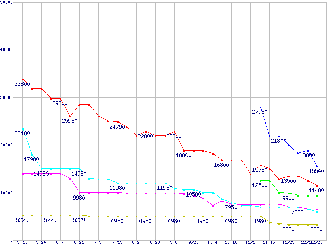 PC2-6400(DDR2-800) DDR2 SDRAM DIMMの最安値推移