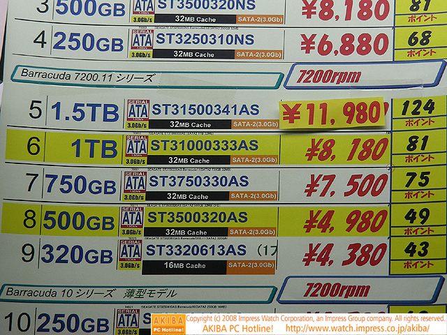 1.5TB HDDが1万2千円割れ、1TBに代わって売れ筋に