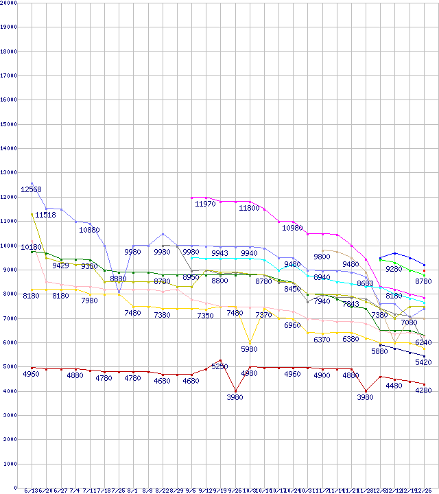 | CPU主要製品(最安値1万円未満)の最安値推移 | | | (2008年6月13日~2008年12月26日) |