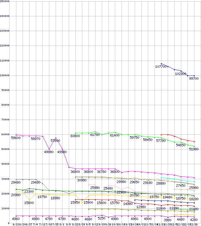 | Intel系CPUの最安値推移 | | | (2008年6月13日~2008年12月26日) |