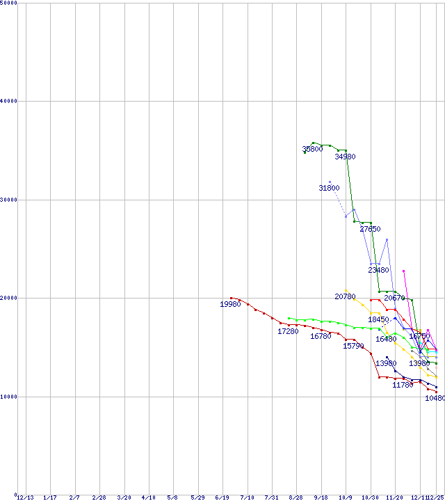 ※製品名をクリックすると個別のグラフを表示します ※点線部は販売店が確認できなかった、または調査データがないことを示します |