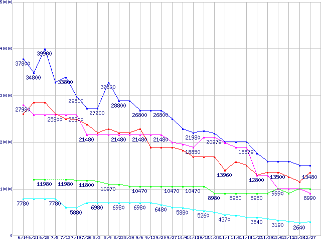 メモリ主要製品の最安値推移