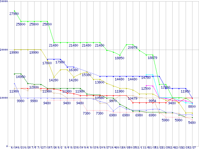 メモリ主要製品(最安値5千円~1万円未満)の最安値推移