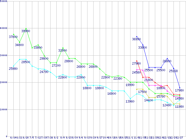 メモリ主要製品(最安値5千円~1万円未満)の最安値推移
