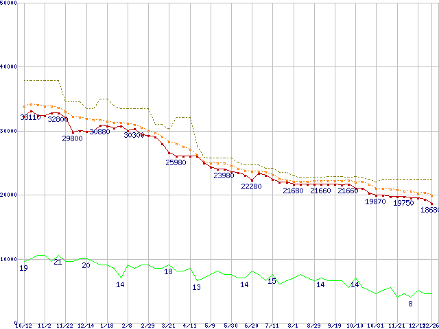 | Core 2 Quad Q6600 (2.40GHz,L2 4MB×2)の価格推移 | | | (2007年10月12日~2008年12月26日) |