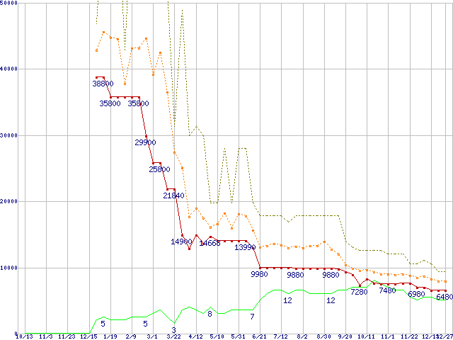 PC3-10600(DDR3-1333) DDR3 SDRAM DIMMの最安値推移