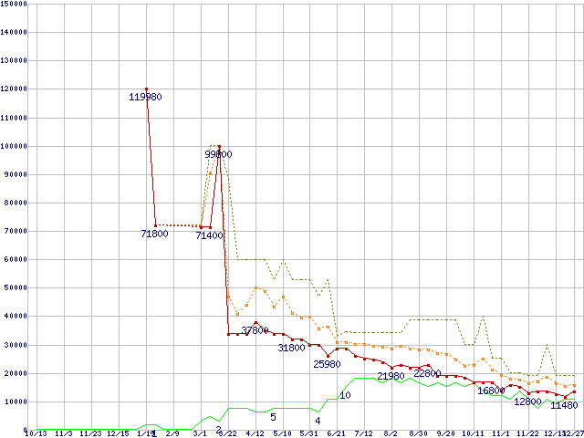 メモリ主要製品(最安値1万円以上)の最安値推移