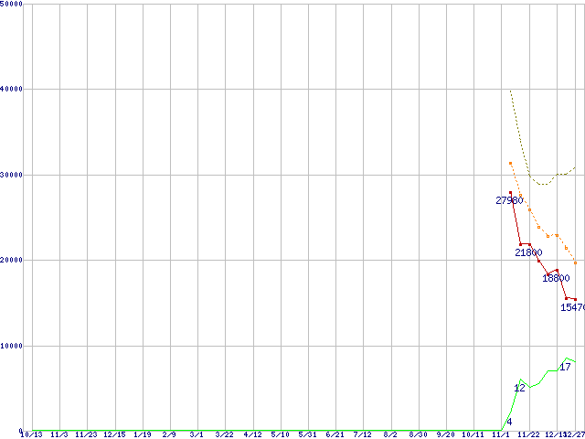 | PC3-10600 2GB×3枚組みセットの価格推移 | | | (2007年10月13日~2008年12月27日) |