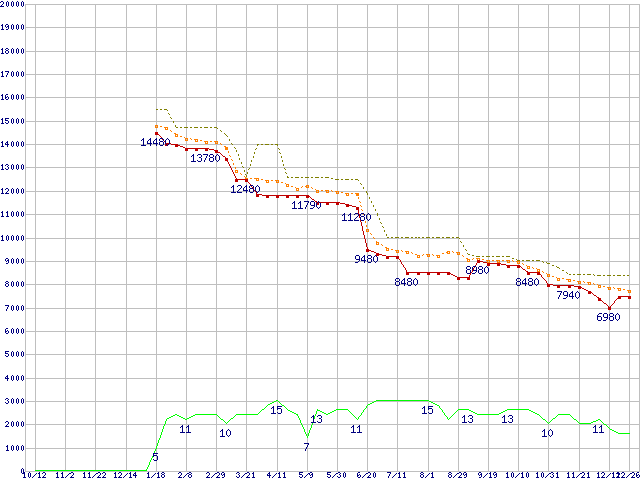 | Athlon X2 5400 (2.8GHz,L2 512KB×2)の価格推移 | | | (2007年10月12日~2008年12月26日) |