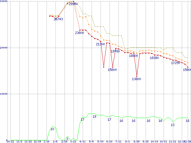 | Core 2 Duo E8400 (3GHz,L2 6MB)の価格推移 | | | (2007年10月12日~2008年12月26日) |