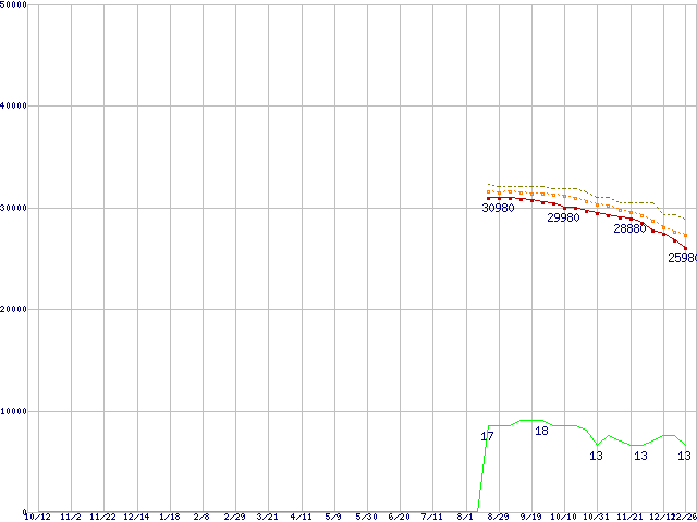 | Core 2 Duo E8600 (3.33GHz,L2 6MB)の価格推移 | | | (2007年10月12日~2008年12月26日) |