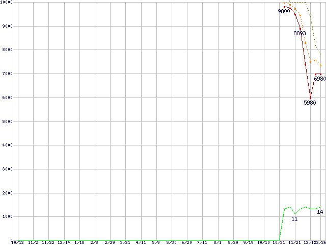 | Athlon X2 5050e (2.6GHz,L2 512KB×2)の価格推移 | | | (2007年10月12日~2008年12月26日) |