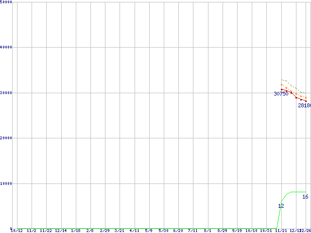| Core i7-920 (2.66GHz)の価格推移 | | | (2007年10月12日~2008年12月26日) |