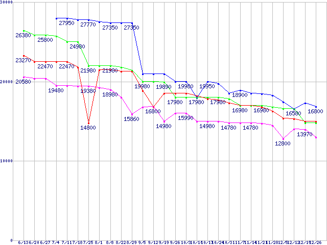 Socket AM2 (HyperTransport 3.0,Quad Core)の最安値推移