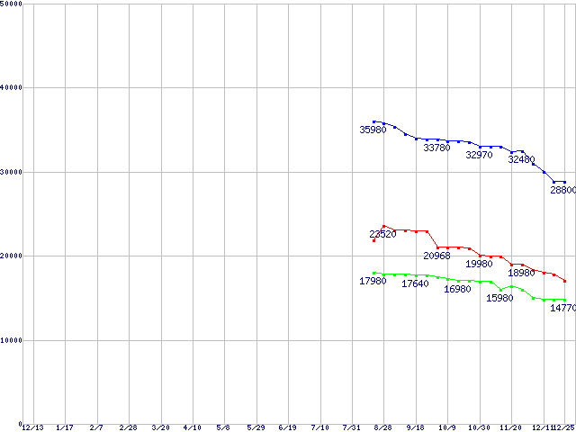 WD VelociRaptor (10000rpm,3Gb/s,16MB)の最安値推移