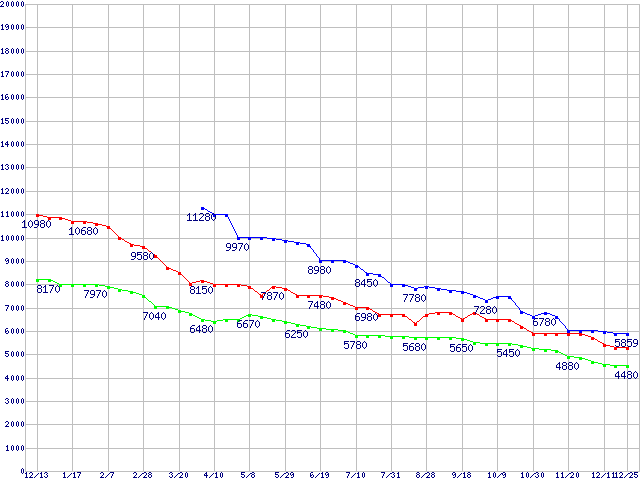 WD Scorpio Blue (5400rpm,3Gb/s,2.5インチ)の最安値推移