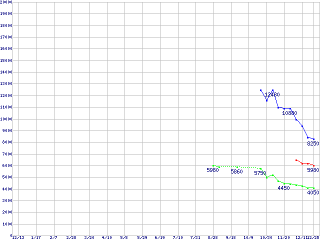 Deskstar P7K500 (7200rpm,3Gb/s)の最安値推移
