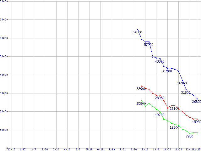 | PATRIOT Extreme Performance Warp Solid State Disk (SSD,3Gb/s,2.5インチ)の最安値推移 | | | (2007年12月13日~2008年12月25日) |