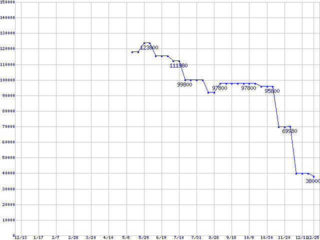 Spinpoint M6 (5400rpm,1.5Gb/s,2.5インチ)の最安値推移