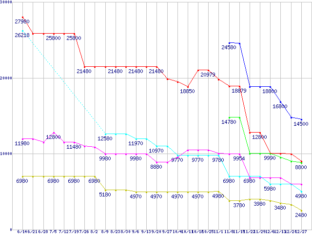 PC3-12800(DDR3-1600) DDR3 SDRAM DIMMの最安値推移