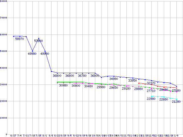CPU主要製品(最安値3万円~6万円未満)の最安値推移