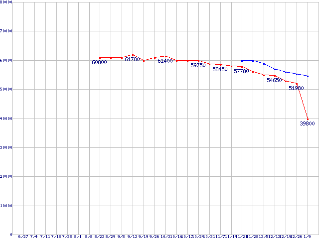CPU主要製品(最安値6万円以上)の最安値推移