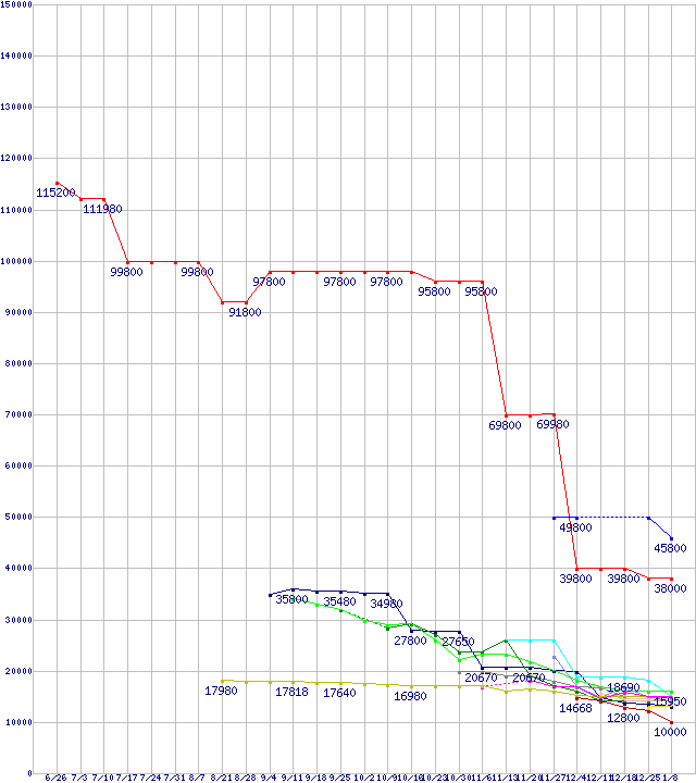 | HDD/SSD 60GB~80GB未満の最安値推移 | | | (2008年6月26日~2009年1月8日) |