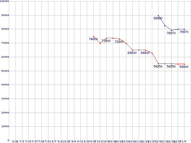 HDD 80GB~100GB未満の最安値推移