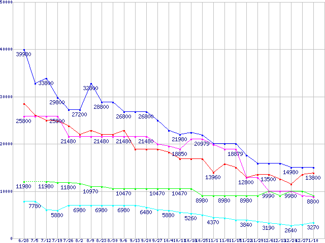 ※点線部は販売店が確認できなかった、または調査データがないことを示します