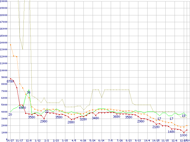 PC2-6400(DDR2-800) DDR2 SDRAM DIMMの最安値推移
