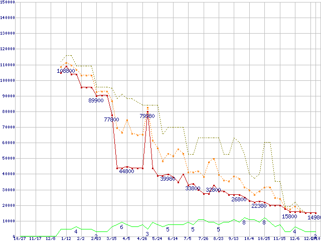 メモリ主要製品(最安値1万円以上)の最安値推移