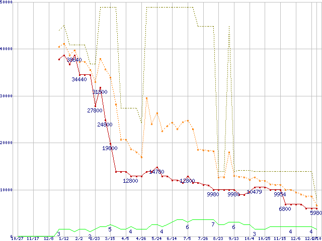 PC3-8500(DDR3-1066) DDR3 SDRAM DIMMの最安値推移