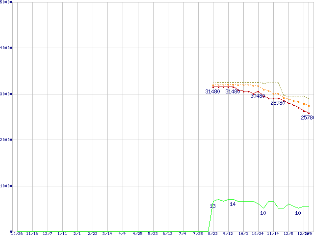 | Core 2 Quad Q9400 (2.66GHz,L2 3MB×2)の価格推移 | | | (2007年10月26日~2009年1月9日) |