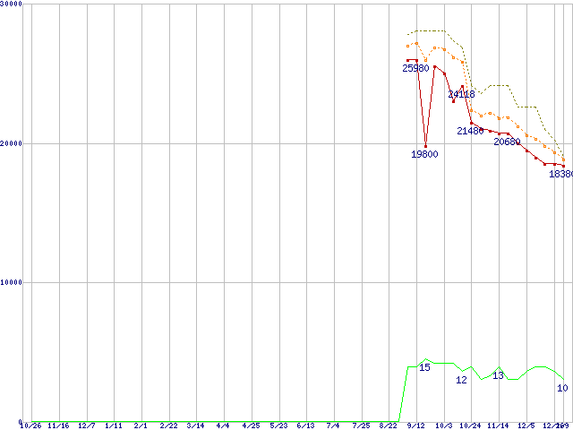| Core 2 Quad Q8200 (2.33GHz,L2 2MB×2)の価格推移 | | | (2007年10月26日~2009年1月9日) |