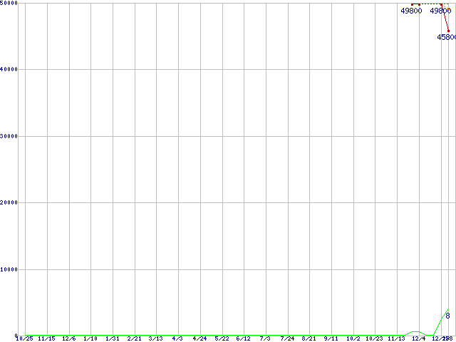 ※このグラフは過去のデータも税率5%相当に調整した税込み相当額のグラフです。 税率変更や、総額表示方式導入(2004年4月)の影響は除いています。 | | | ●凡例 | 最安値 (点線部は販売店未確認 または未調査) | 平均値 | 最高値 | ショップ数 |