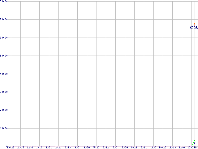 ※このグラフは過去のデータも税率5%相当に調整した税込み相当額のグラフです。 税率変更や、総額表示方式導入(2004年4月)の影響は除いています。 | | | ●凡例 | 最安値 (点線部は販売店未確認 または未調査) | 平均値 | 最高値 | ショップ数 |