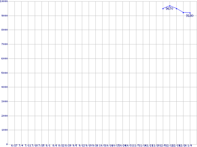 | Socket AM2 (HyperTransport 3.0,Triple Core,TDP 65W)の最安値推移 | | | (2008年6月27日~2009年1月9日) |