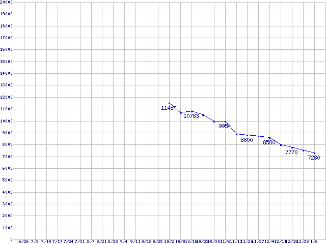 WD Caviar Blue (7200rpm,3Gb/s,16MB)の最安値推移