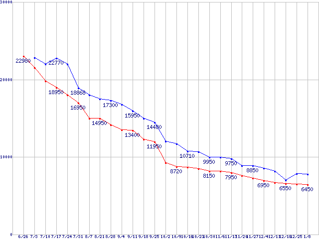 Deskstar P7K500 (7200rpm,3Gb/s)の最安値推移