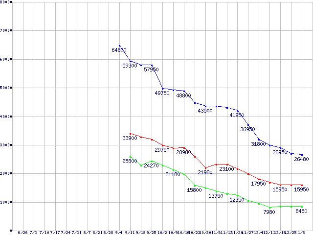| PATRIOT Extreme Performance Warp Solid State Disk (SSD,3Gb/s,2.5インチ)の最安値推移 | | | (2008年6月26日~2009年1月8日) |