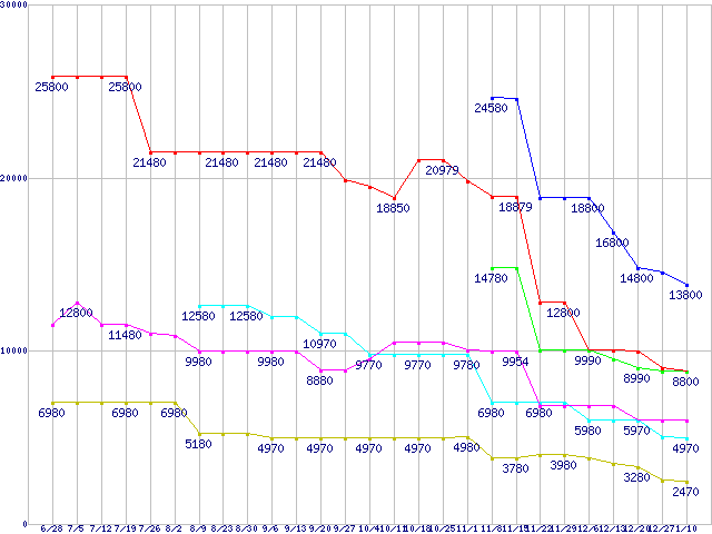 PC3-8500(DDR3-1066) DDR3 SDRAM DIMMの最安値推移