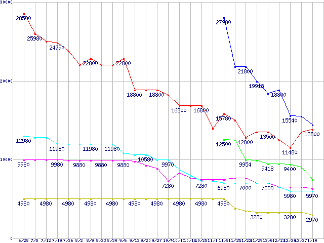 PC2-6400(DDR2-800) DDR2 SDRAM DIMMの最安値推移