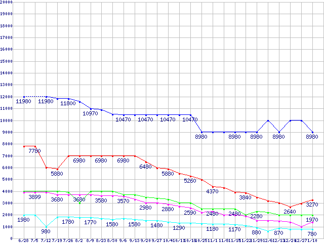 PC2-6400(DDR2-800) DDR2 SDRAM DIMMの最安値推移