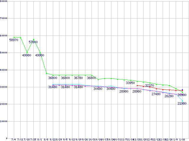 CPU主要製品(最安値3万円~6万円未満)の最安値推移