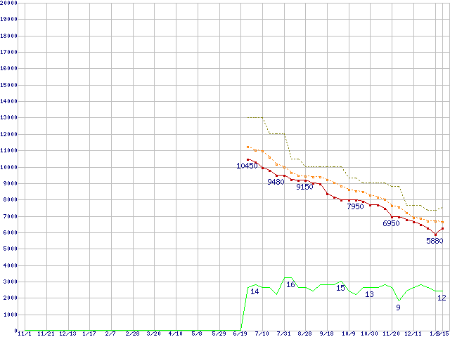 | WD3200BEVT (320GB,8MB)の価格推移 | | | (2007年11月1日~2009年1月15日) |